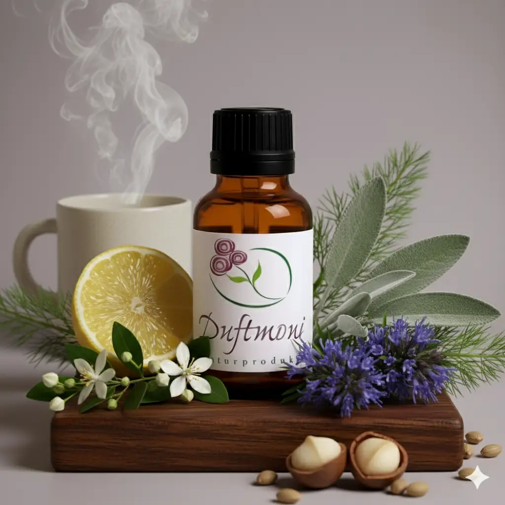 Es riecht mal ganz anders und so lekker. Macadamianussöl *, Jojobaöl *, Ysop *, Fenchel *, Salbei *, Anden Myrthe *, Zitrone * und andere Öle.