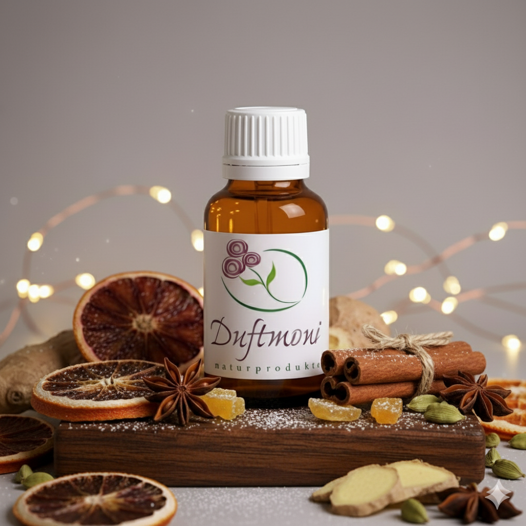 - Orange, Zimt, Anis, Blutorange, Zitrone, Ingwer, Cardamom, also alles, was die Weihnachtsbäckerei erfordert